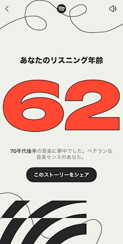 こんばんは!じゅりです🌙 わたし普段Spotifyで音楽きいてるんですけど 昨日、年末恒例の1年間の分析が出ました! 今年は新しい音楽を開拓できたので 聴く曲の幅が広がった1年でした👀 Spotifyによると わたしの音楽年齢は62歳らしい笑笑笑笑笑 たしかに80年代とかの洋楽ばっっっかり聞くので 納得はするものの 実年齢とのギャップが広すぎて😂😂😂 家族の影響で70-80年代の洋楽が大好きです✊🏻 音楽の話大好きなので 沢山布教しに来てください✊🏻 待ってます🤍 じゅりより🎀